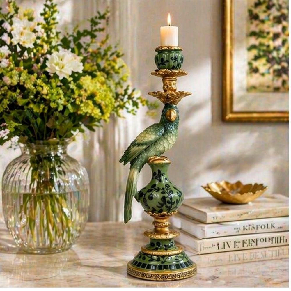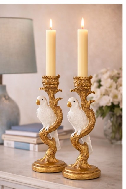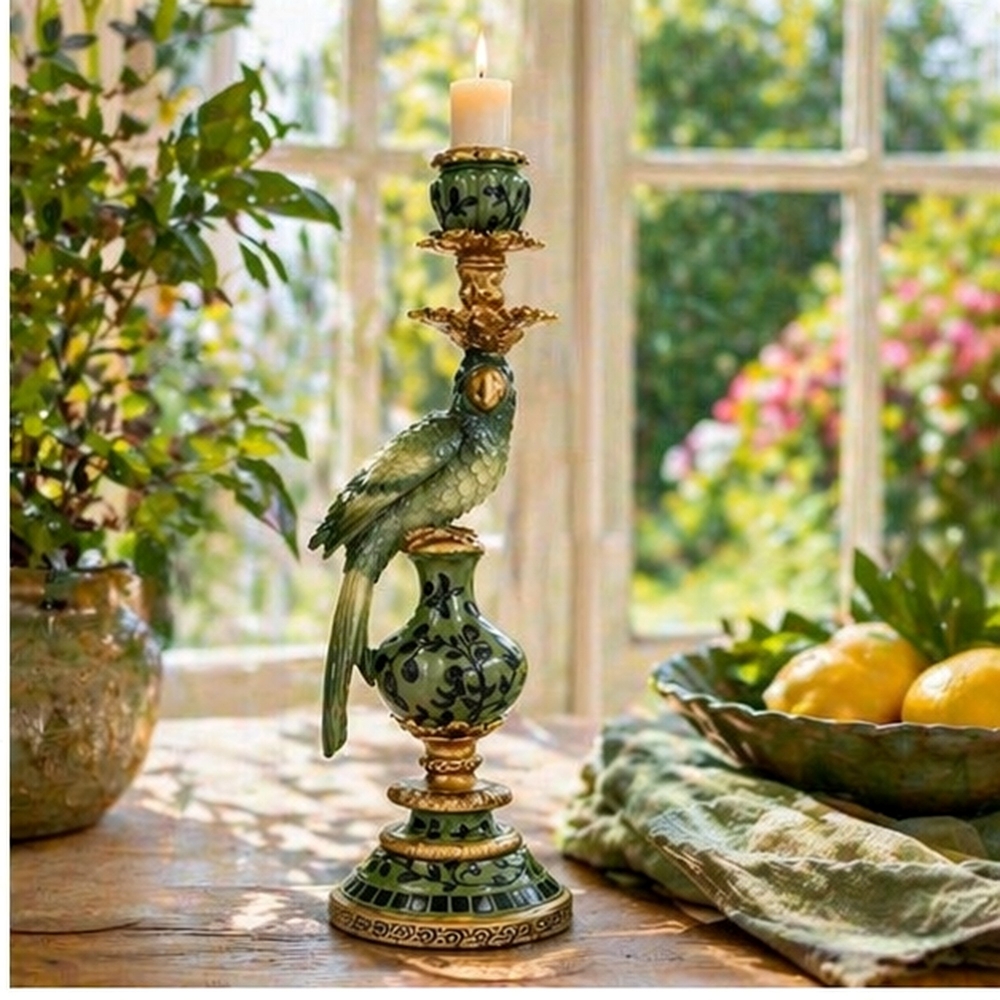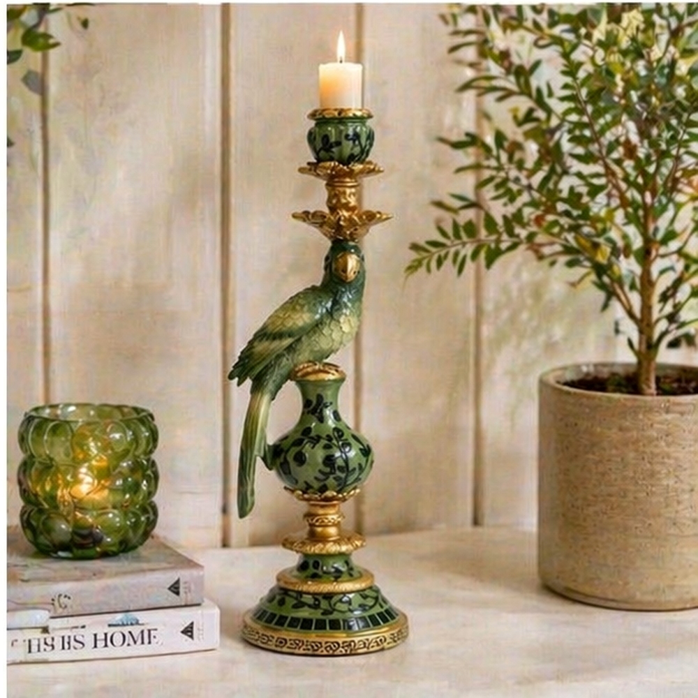 Gi belysningen i rommet et eksotisk preg med denne lysestaken med papegøye. Laget av poly. Lysestaken er 40 cm høy.