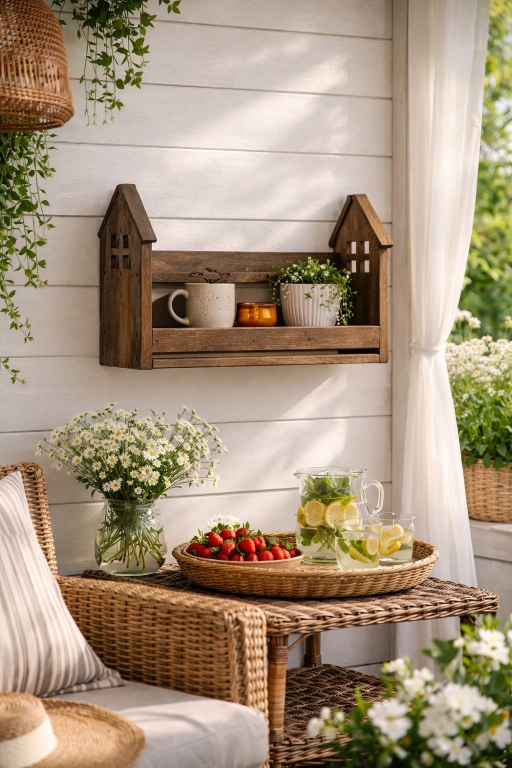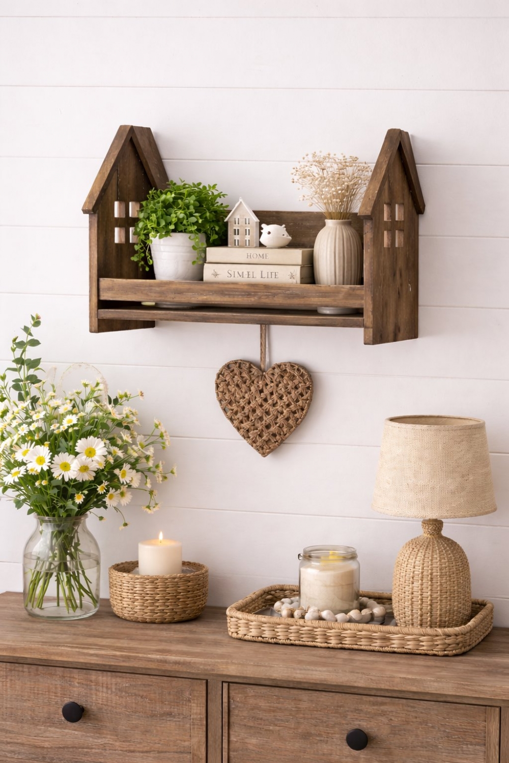 Vegghyllen er laget av resirkulert tre. Lengde på varen: 49,00 cm Bredde på varen: 16,00 cm Høyde på varen: 34,00 cm