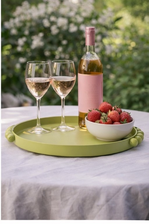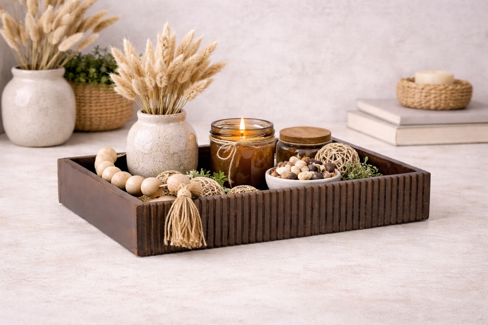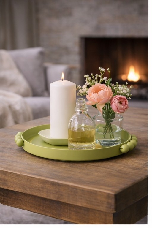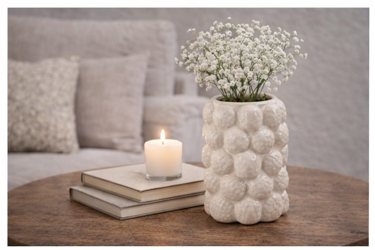 Dette er ett av produktene i denne nye serien med treprodukter som er dekorert med treperler. Flotte detaljer som gir en lun og god stemning. Fatet er 29 cm bredt og 36 cm høyt.