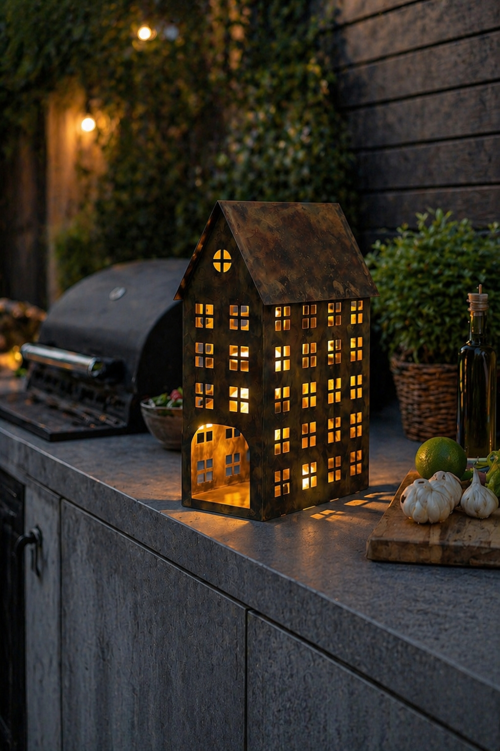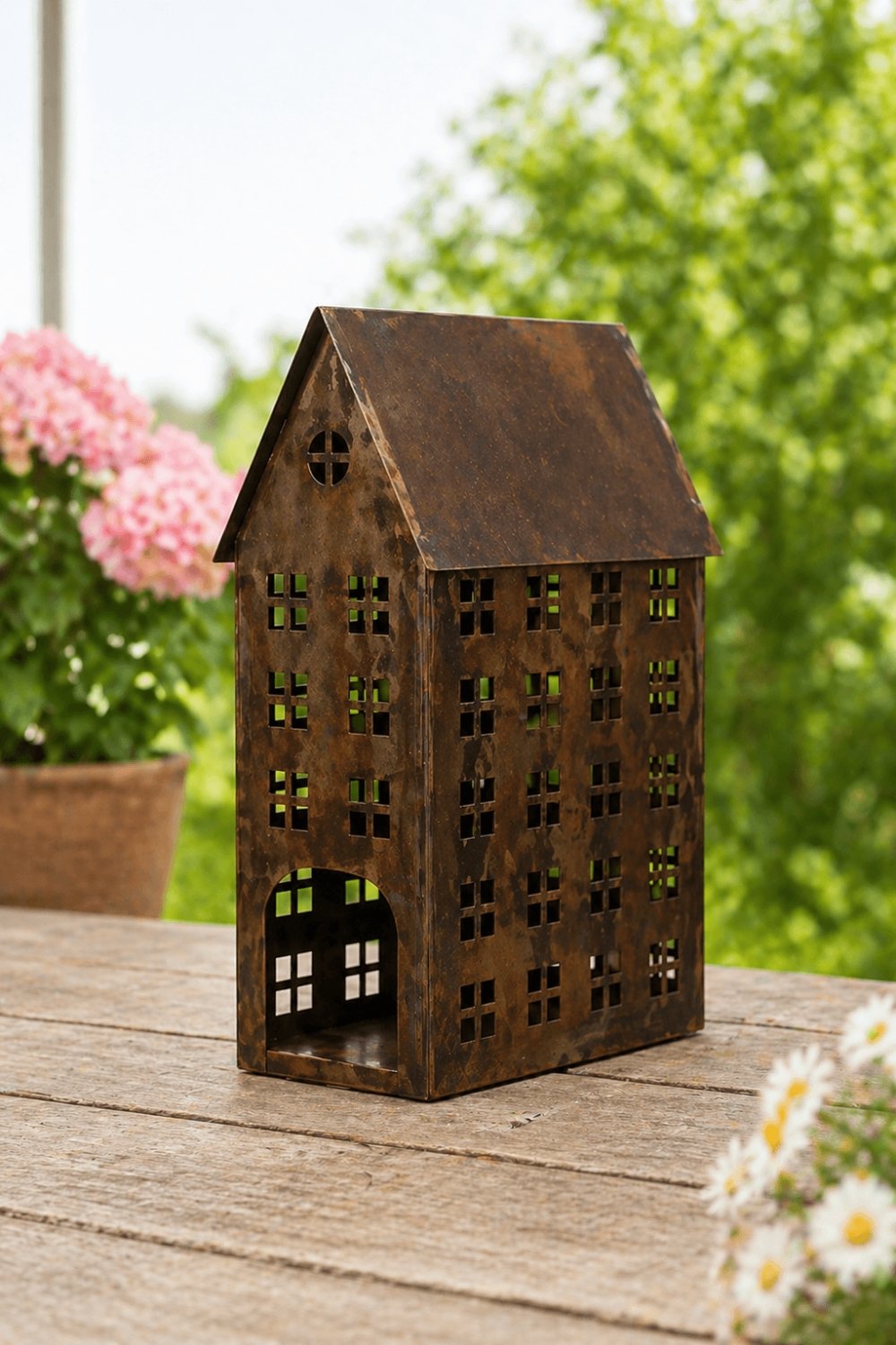 Sorte metall lykter med sjarm, høyden er fra 13 - 35 cm.