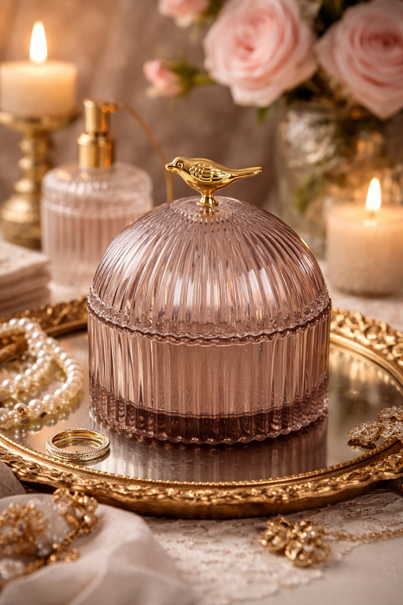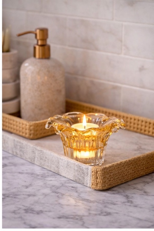 Nydelig lysfat for kubbelys i gyllen brun/rosa marmor! Tungt og veldig flott utførelse.