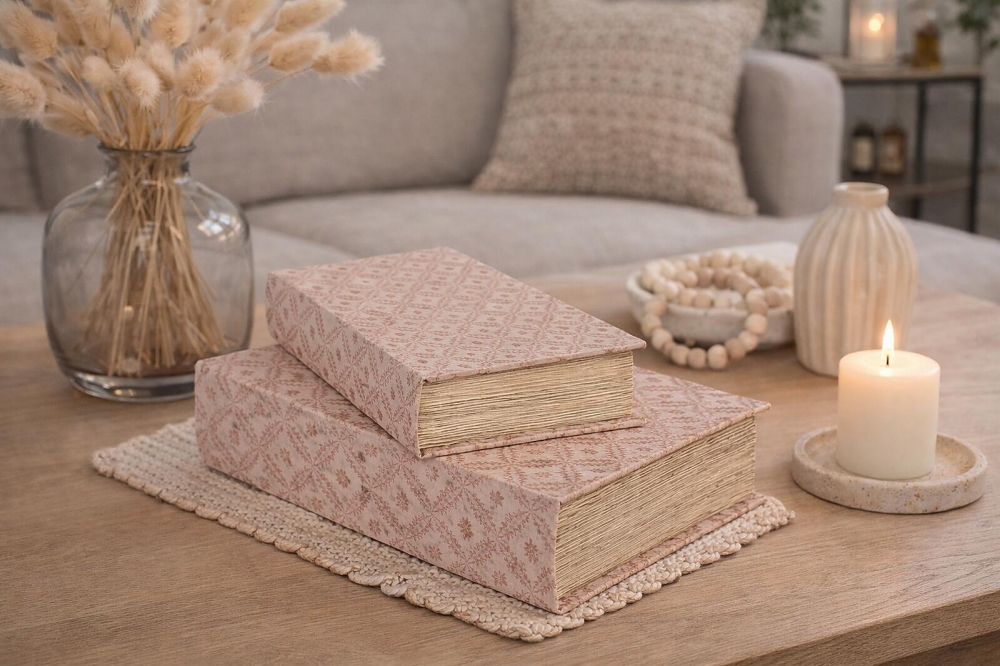 Bok med oppbevaring rosa - liten