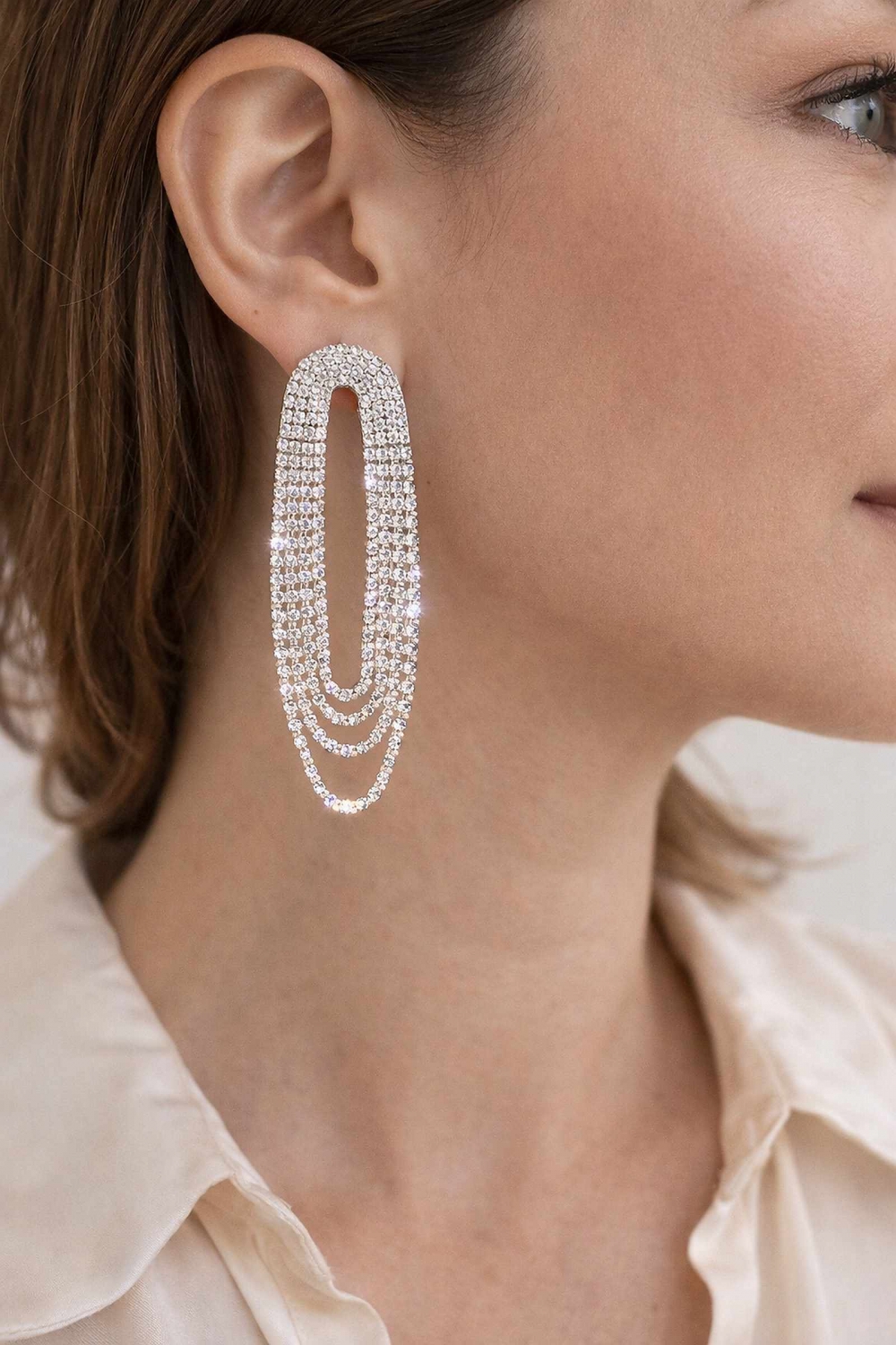 Øredobb med swarovski krystall med silketråd dusk. Ca 5cm lang. Nikkelfri.
