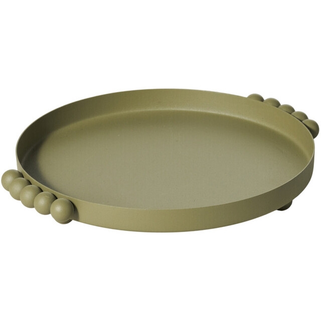 Disse bretten er håndlaget av resirkulert papir, bambus (Phyllostachys edulis) og jern. Den runde formen og den matte mørkegrønne finishen understreker et moderne design. 25 - 31 cm bredde, 7 cm høyde.