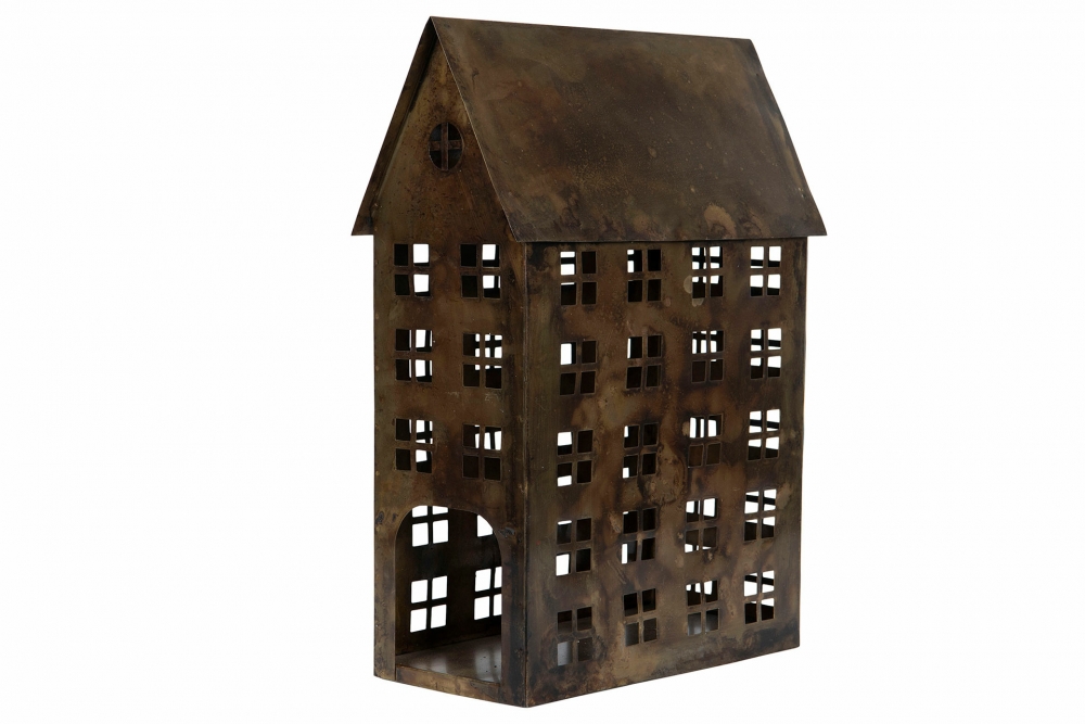 Tre med metallholder til lyset. Flotte detaljer, 10 x 5 x 5 cm.