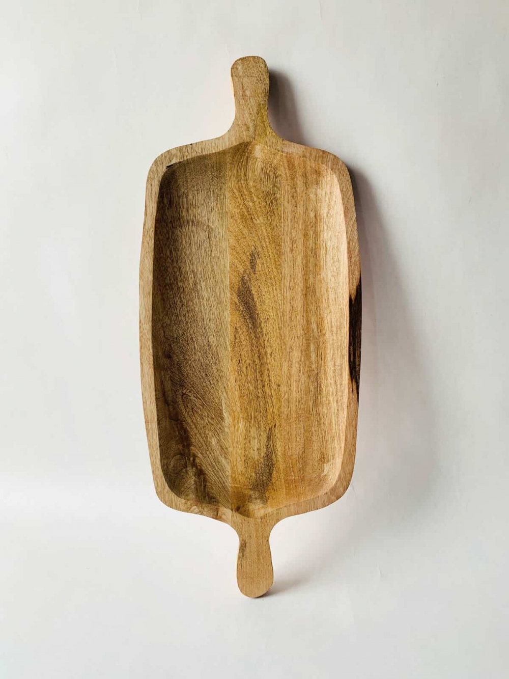 Trefat fra Trend design med en herlig organisk form. Fatet er 30 x 40 cm. Sorte metallhåndtak.