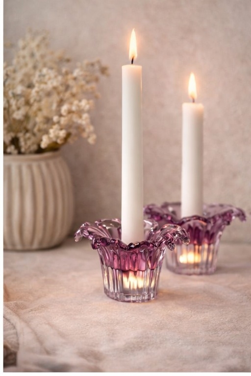 Glassene er 5 x 4 cm. Lys grå, mørk grå, gul, blå og grønn. Vokslys.
