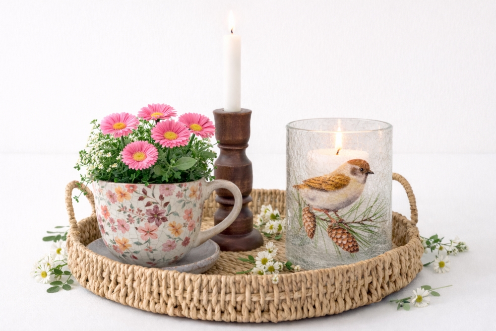 Lysglass - ville blomster 9 cm