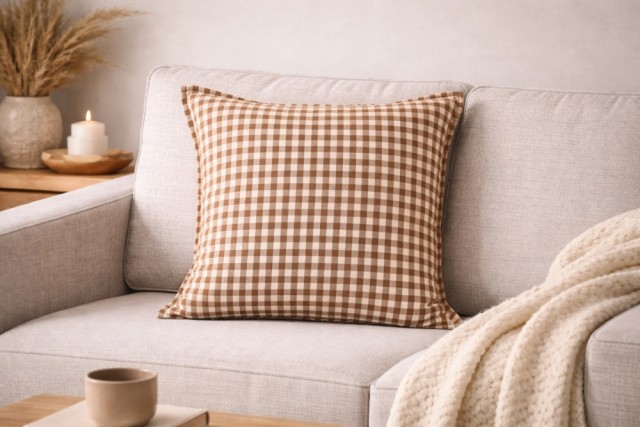 Rutete putetrekk 50 x 50 cm Artikkelnr.: T34139 Vasket bomull, kanelfarge. NOK159,00 inkl. mva. På lager Kjøp Del dette