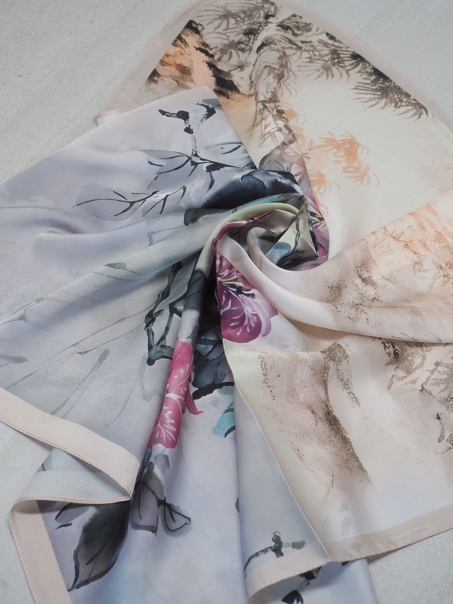 Satengskjerf rosa, grå og brun