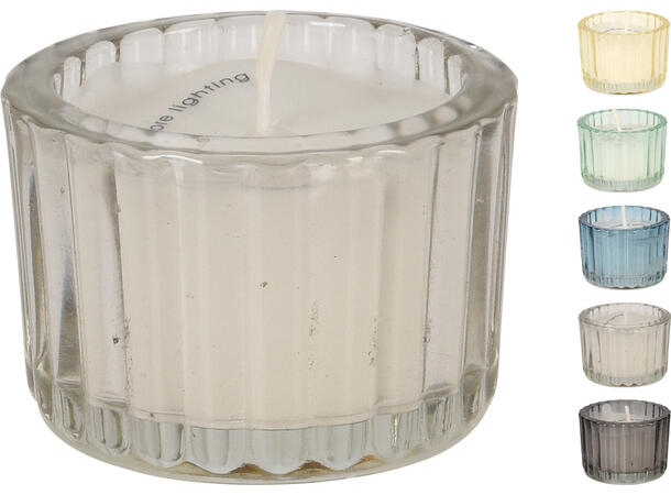 Duftlys i glass - sett med 5 stk Artikkelnr.: 121927 Glassene er 5 x 4 cm. Lys grå, mørk grå, gul, blå og grønn. Vokslys. NOK169,00 inkl. mva. På lager Kjøp Del dette