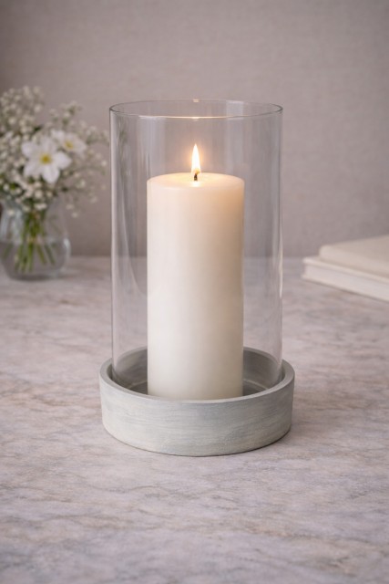 Stormlykt Artikkelnr.: 2124 Passer fint både inne og ute, passer til kubbelys eller lyslenke. Støpt lys grå bunn og glass sylinder. NOK195,00 inkl. mva. På lager Kjøp Del dette