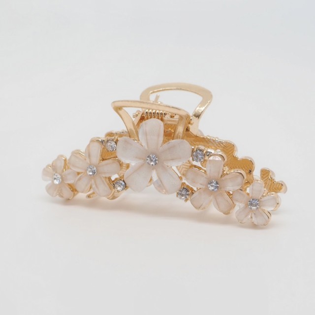 Hårklype med blomsterstener hvit Artikkelnr.: 7days Hårklyper med blomster, glitter og blanke glasstener. Sitter supergodt i håret. Klypen har gulldetaljer. Lengde 7 cm, høyde 3 cm, medium stor klype. NOK199,00 inkl. mva. På lager Kjøp Del dette