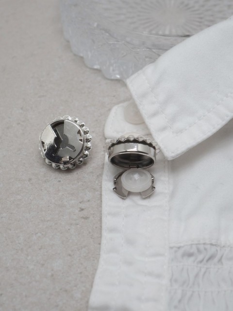 Du trer pynten rett over knappen, og vips – knappen skjules og plagget får et helt nytt og lekkert uttrykk. Perfekt til både skjorter, cardigans og bluser når du ønsker et hint av eleganse i hverdagsantrekket.