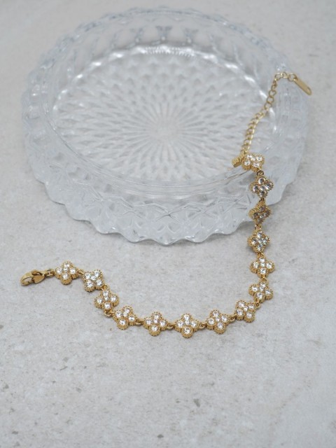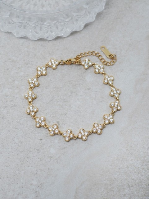 Blomsterarmbånd med zirkoner gullfarget stål Artikkelnr.: 7days Nydelig armbånd med flotte deltaljer! NOK449,00 inkl. mva. På lager Kjøp Del dette