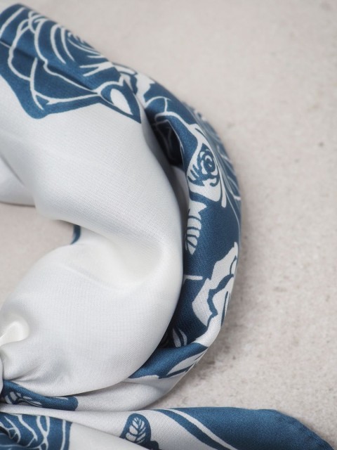 Med sin størrelse på 70 x 70 cm kan det styles på mange måter: rundt halsen, i håret, på vesken eller som et moderne tilbehør på håndleddet. Et allsidig og delikat skjerf som passer til både hverdags og spesielle anledninger.