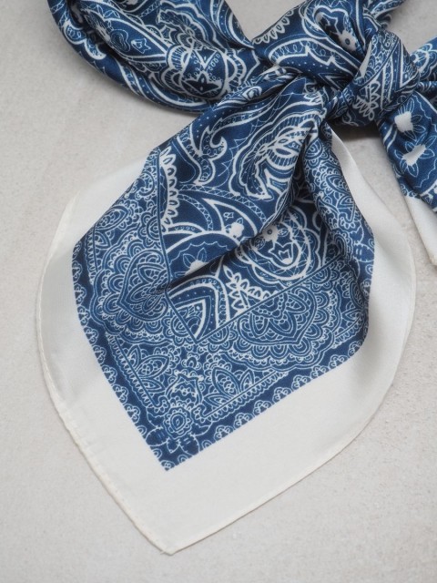 Skjerfet er laget i myk sateng av 100 % polyester med en lett glans som tilfører et sofistikert preg. Med størrelsen 70 x 70 cm kan det styles på flere måter – rundt halsen, i håret eller knyttet på vesken.