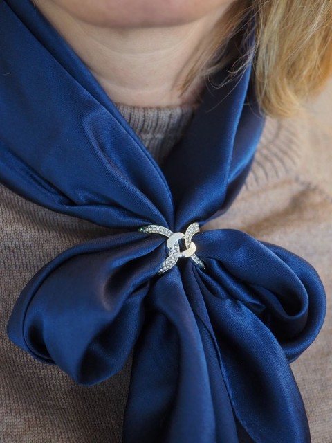 Løft antrekket med denne elegante skjerfnålen i sølvfarge, dekorert med vakker strass som gir et subtilt, men luksuriøst glimt. Skjerfnålen er liten og nett (ca. 3x2 cm) og passer perfekt til skjerf, sjal, blazere og kåper.