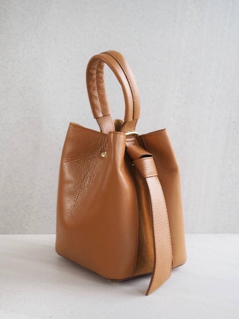 Bøtteveske i glatt skinn konjakk