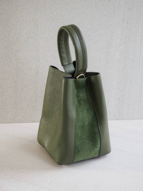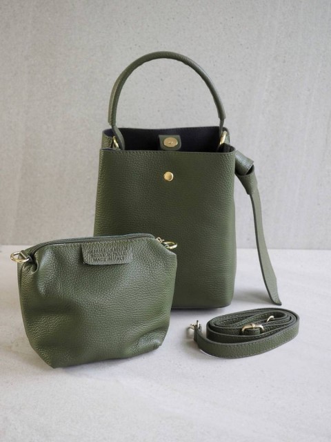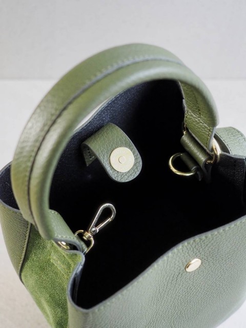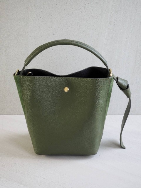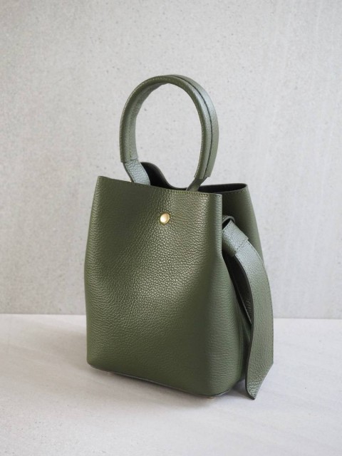 Bøtteveske i glatt skinn oliven