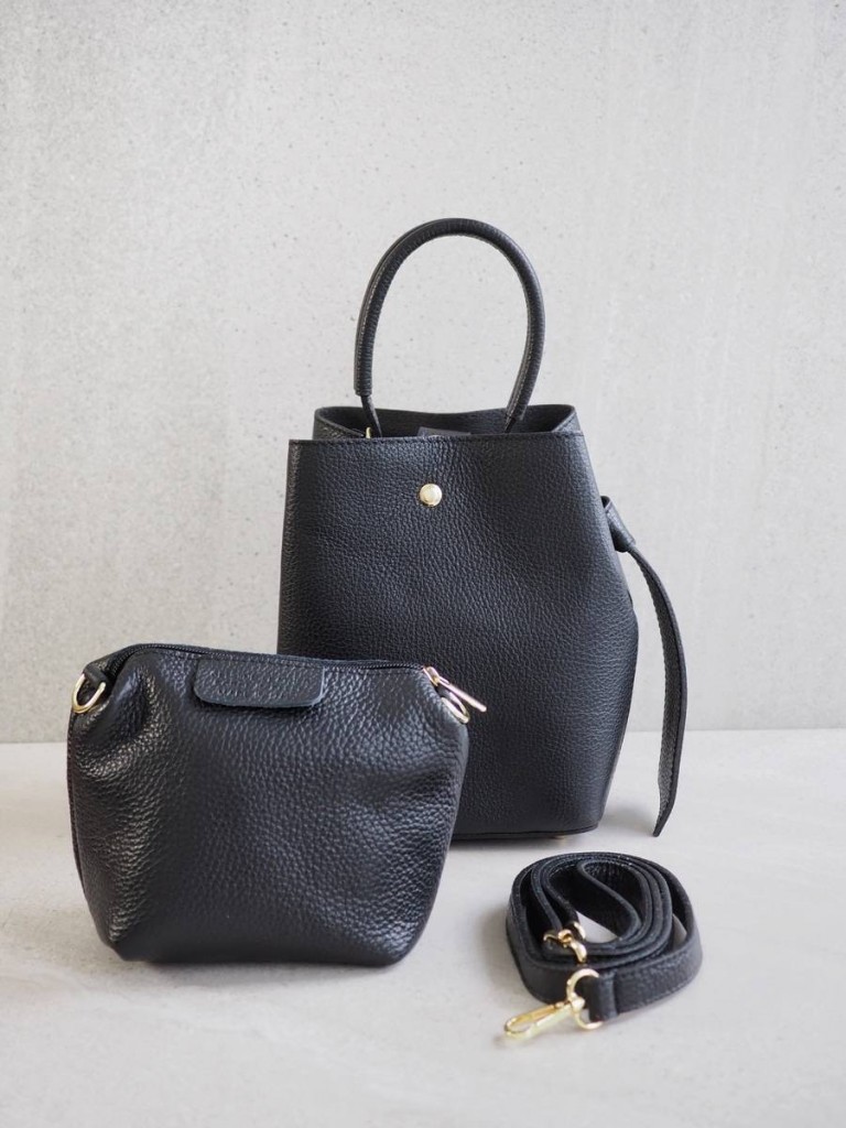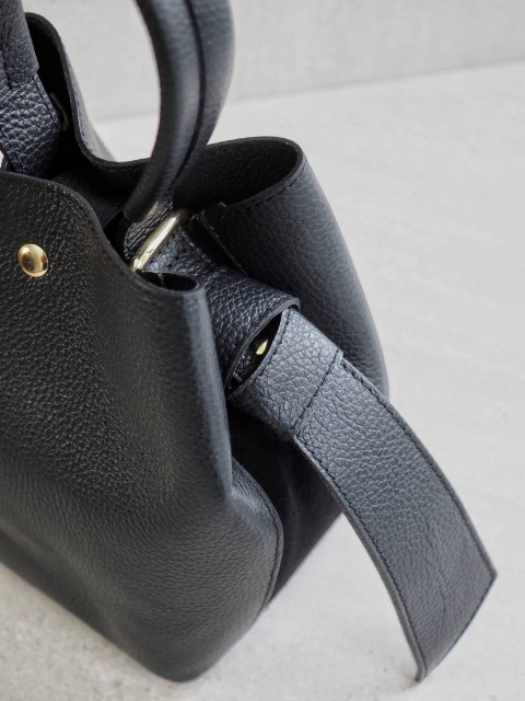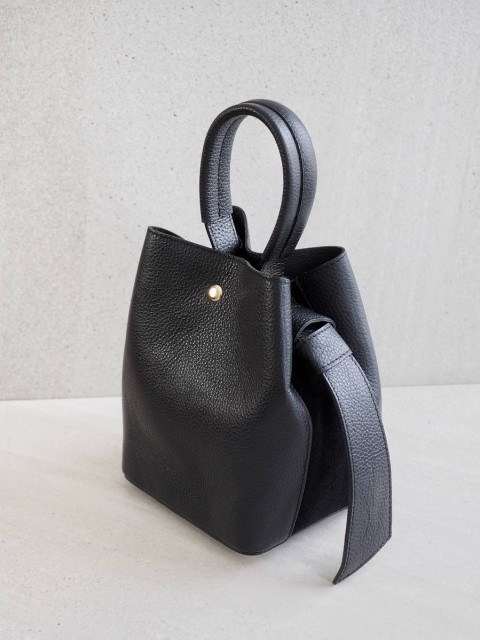 Bøtteveske i glatt skinn sort Artikkelnr.: 7days Sofistikert og elegant bøtteveske i både semsket og glatt skinn. Vesken har et dekorativt knutebelte. Vesken har to stropper, den lengste er regulerbar, den andre er et håndtak. NOK1 799,00 inkl. mva. På lager Kjøp Del dette Produktinfo Vesken har liten sminkepung til verdisaker. Str: 21cm - 16cm - 14cm Lengde av håndtak: 13cm Stroppen på på det korteste: 72cm, på det lengste: 132cm Produsert i Italia
