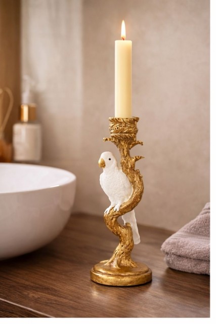 Lysestake med hvit fugl på gren Artikkelnr.: 1006353 Lysestake med fugl på en gren. For de som ønsker et eksotisk og lekent element i interiøret sitt. Laget av polyetylen, 26 cm høy. NOK395,00 inkl. mva. På lager Kjøp Del dette