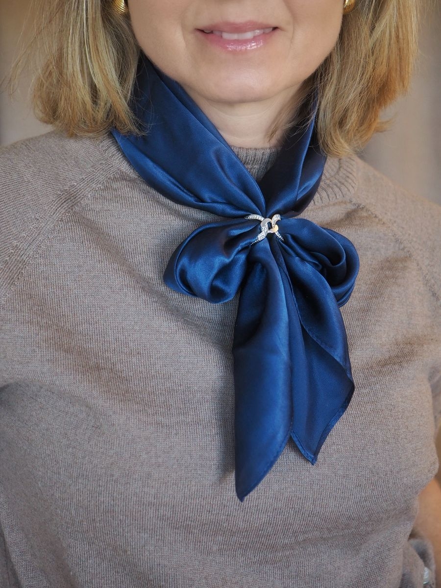 Løft antrekket med denne elegante skjerfnålen i sølvfarge, dekorert med vakker strass som gir et subtilt, men luksuriøst glimt. Skjerfnålen er liten og nett (ca. 3x2 cm) og passer perfekt til skjerf, sjal, blazere og kåper.