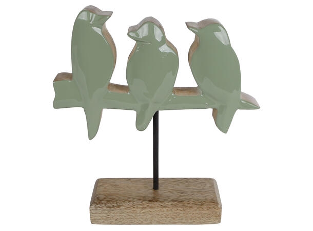 Skjønne grønne fugler sitter på en gren. Mangotre. 20 x 15 x 5 cm.