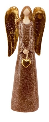 Brun engel med hjerte (hånd på brystet) - 22 cm høy