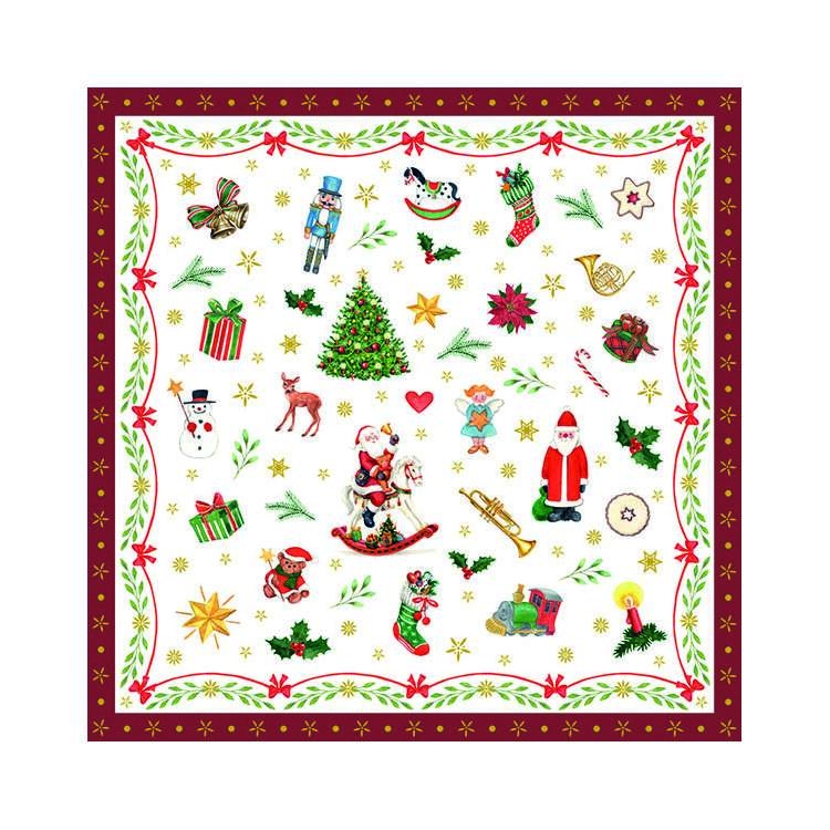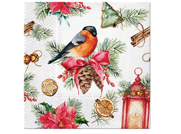 Serviettene har papir i tre lag. 33 x 33 cm.