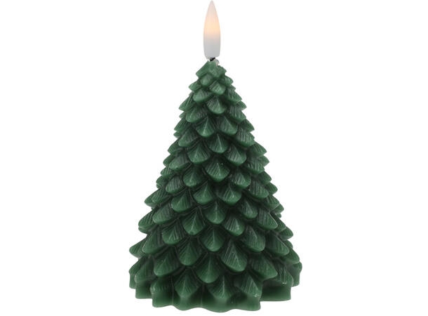 Nydelig juletre med ett varmt og fint lys! Bruker 2 AA batterier, følger ikke med. 11 cm høyt.