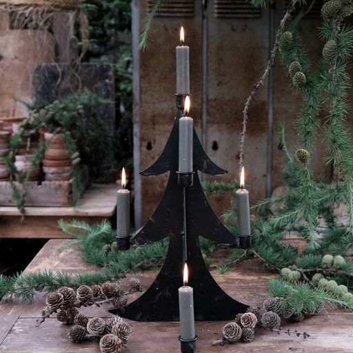 Sort metall, bordet eller kommodens høydepunkt med sin flotte utførelse. 30x28x40cm. Nydelig i seg selv og enkel å dekorere rundt med granbar eller liknende dersom man ønsker det.