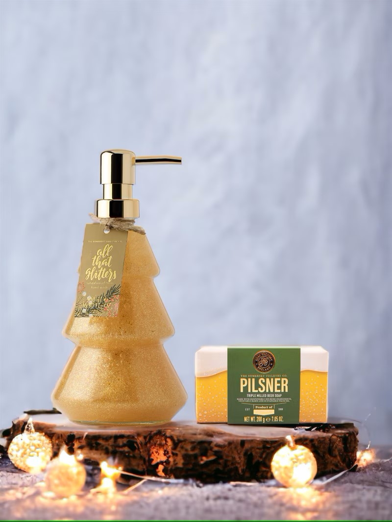 Juletre gull og glitter med flytende såpe - duft av sandeltre og mose