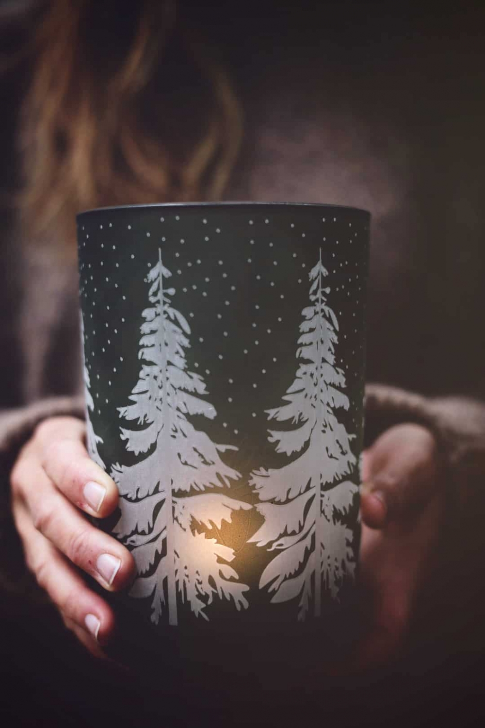 Lysglass med trær - 18 cm høyt