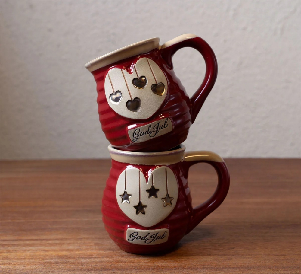 Den ultimate julekoppen i klassisk rød med God jul og gullhjerter for de som elsker julen! Fyll koppen med din favorittdrikk og nyt juletiden.