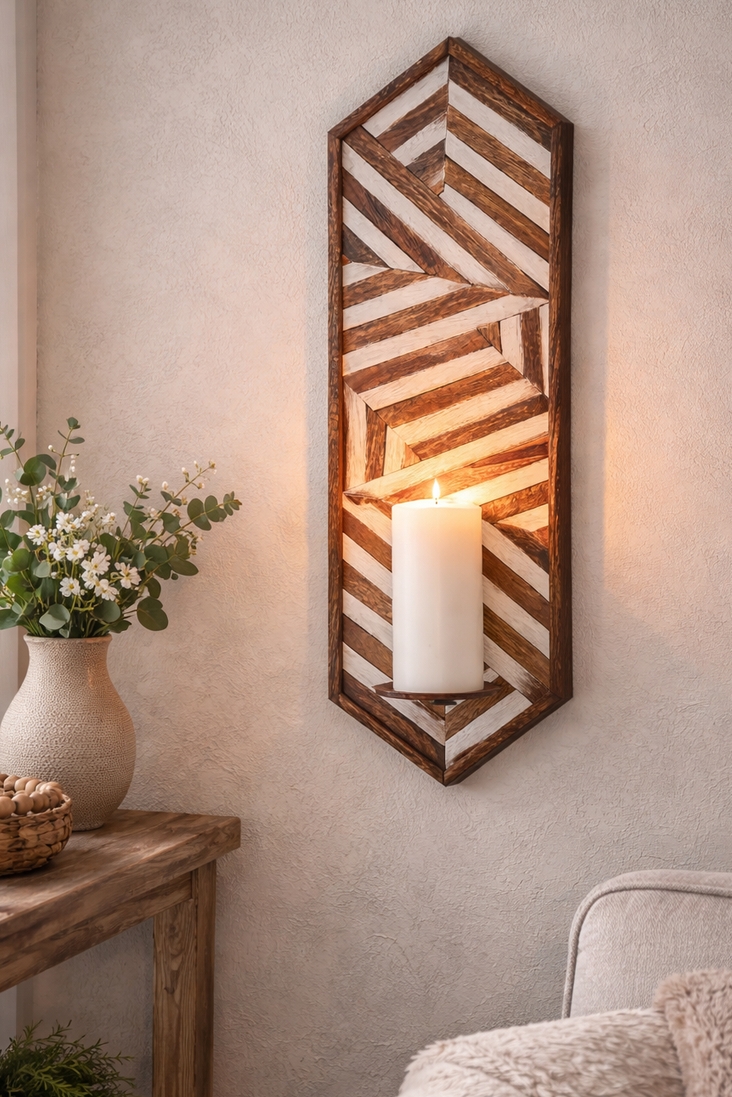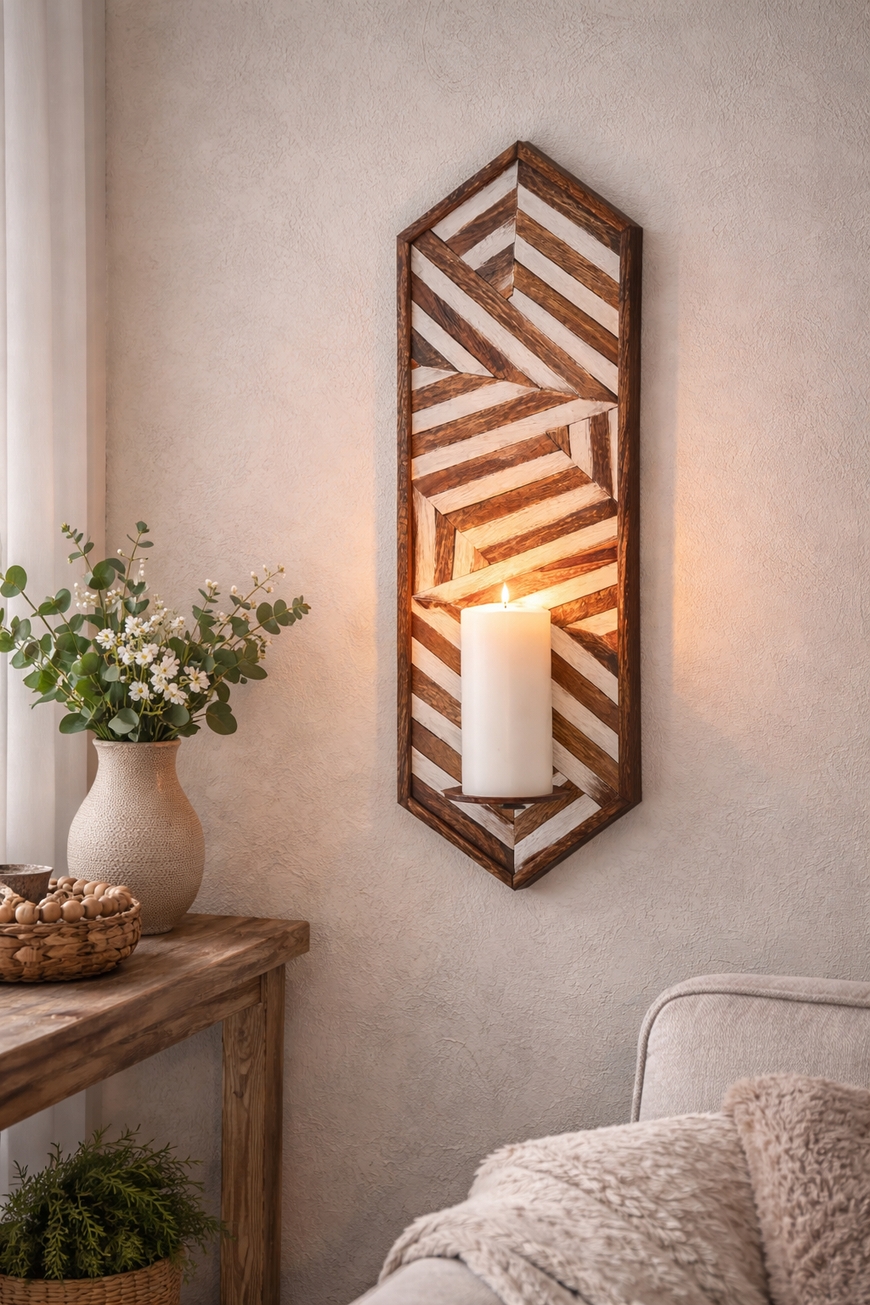 Vegglysestake til kubbelys brun/hvit