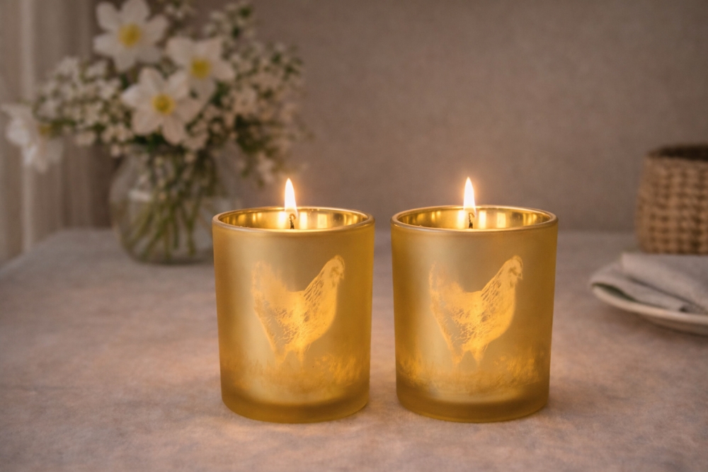 Hvite lys med gul eggeplomme som blir synlig etter hvert som du brenner lyset! Parafinlys, brennetid 6 timer.