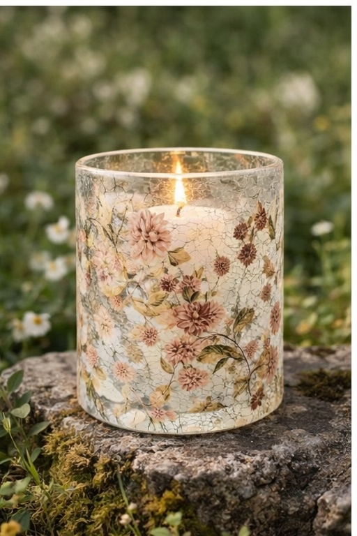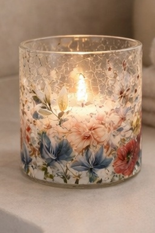 Lysglass ville blomster 15 cm
