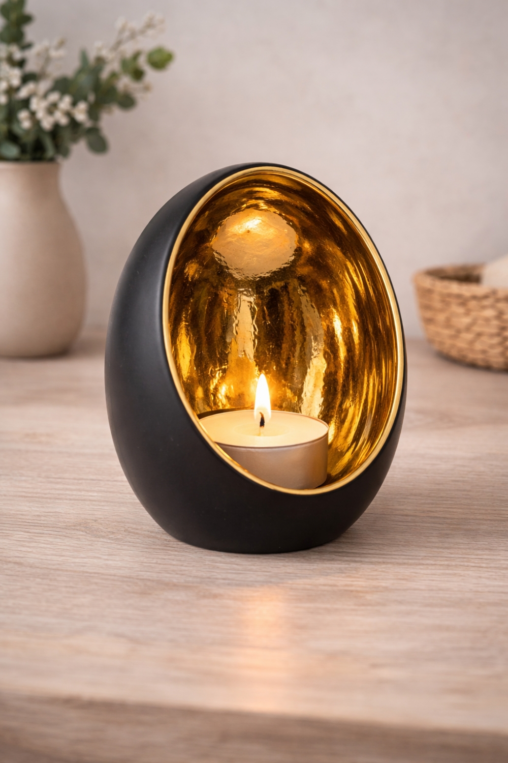 Lyslykt til telys i matt sort og gull, stor