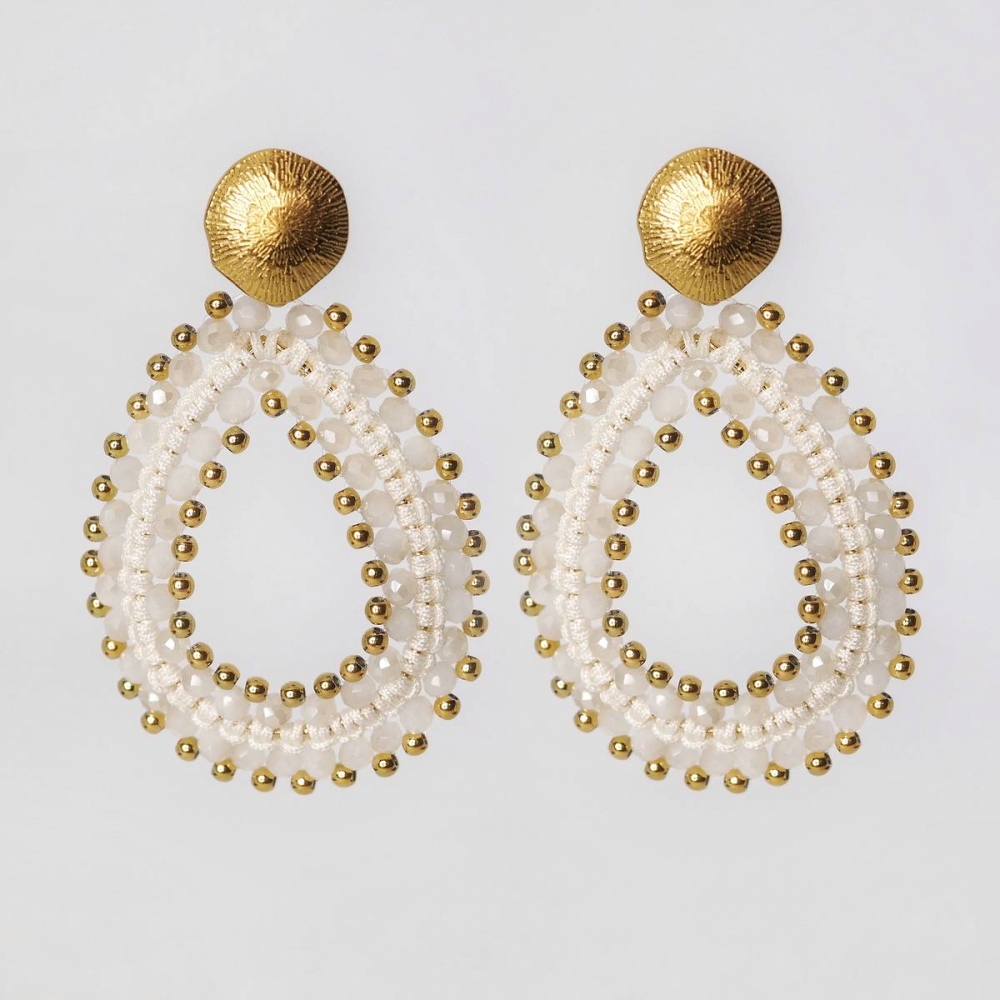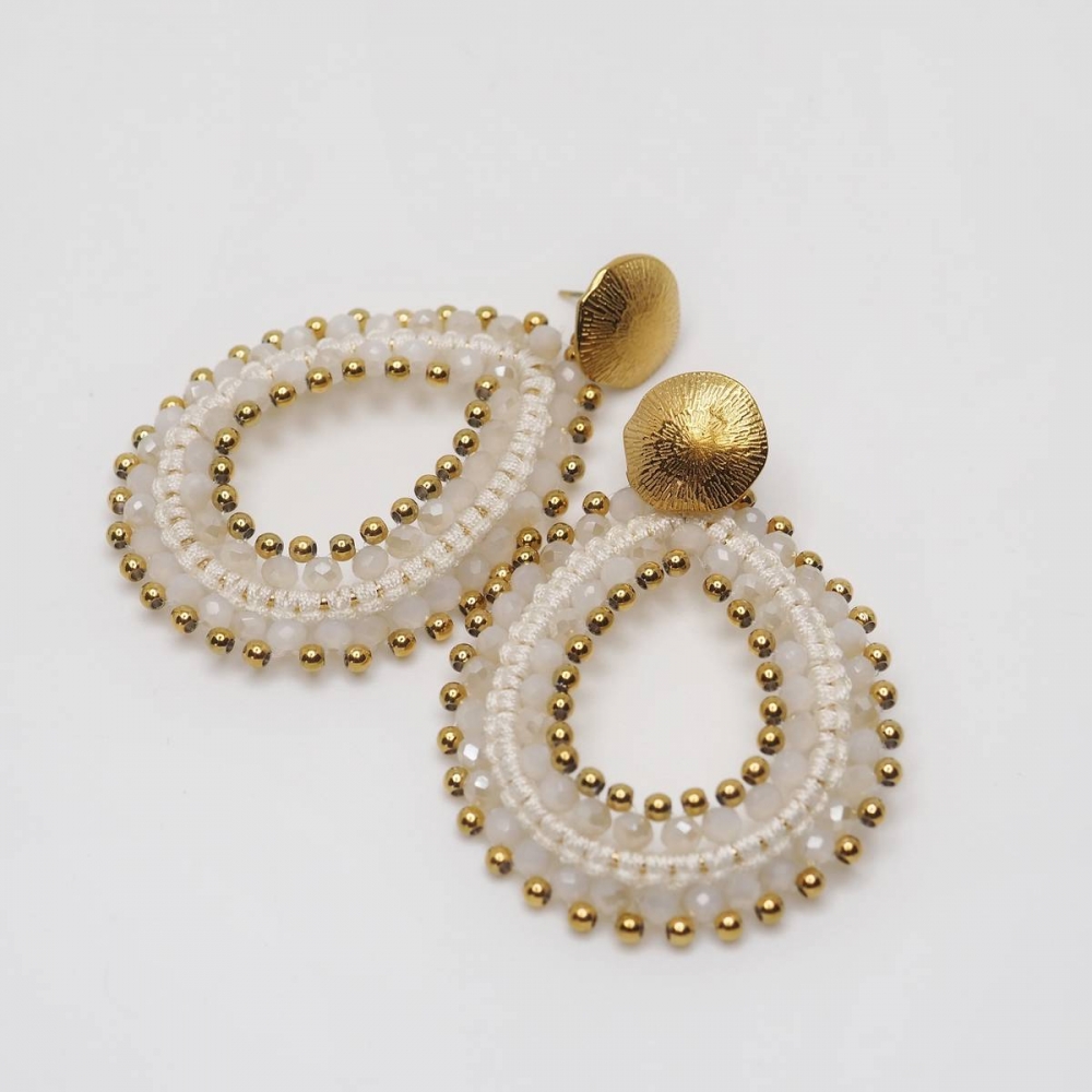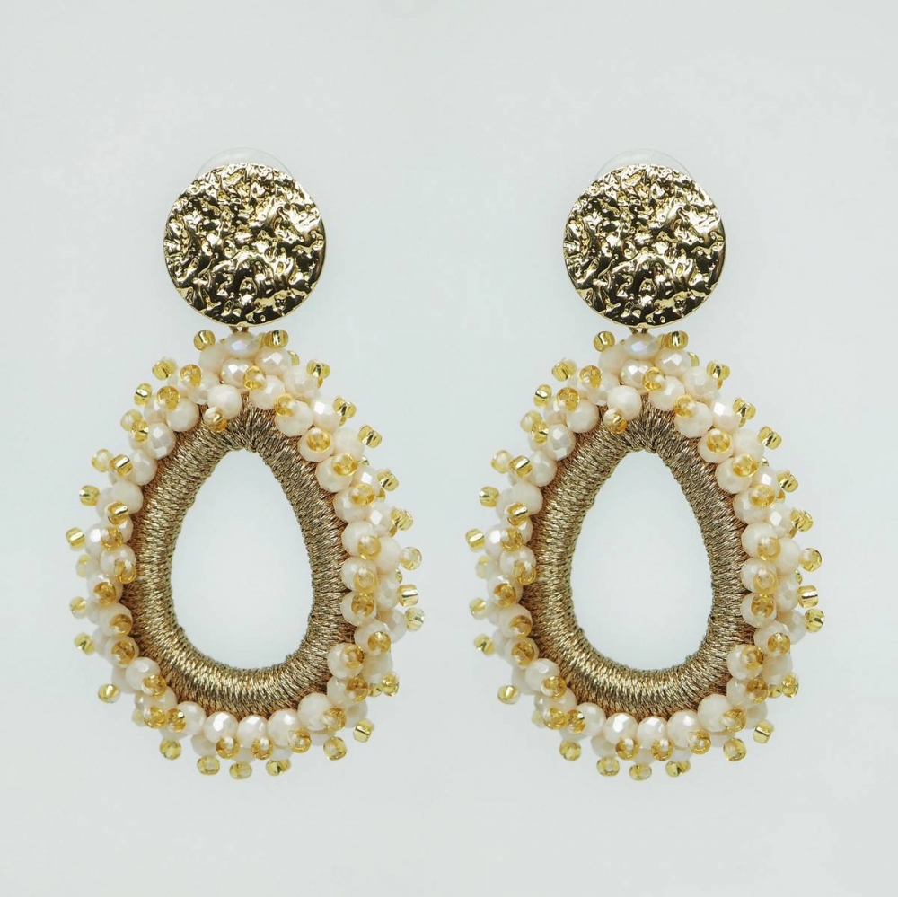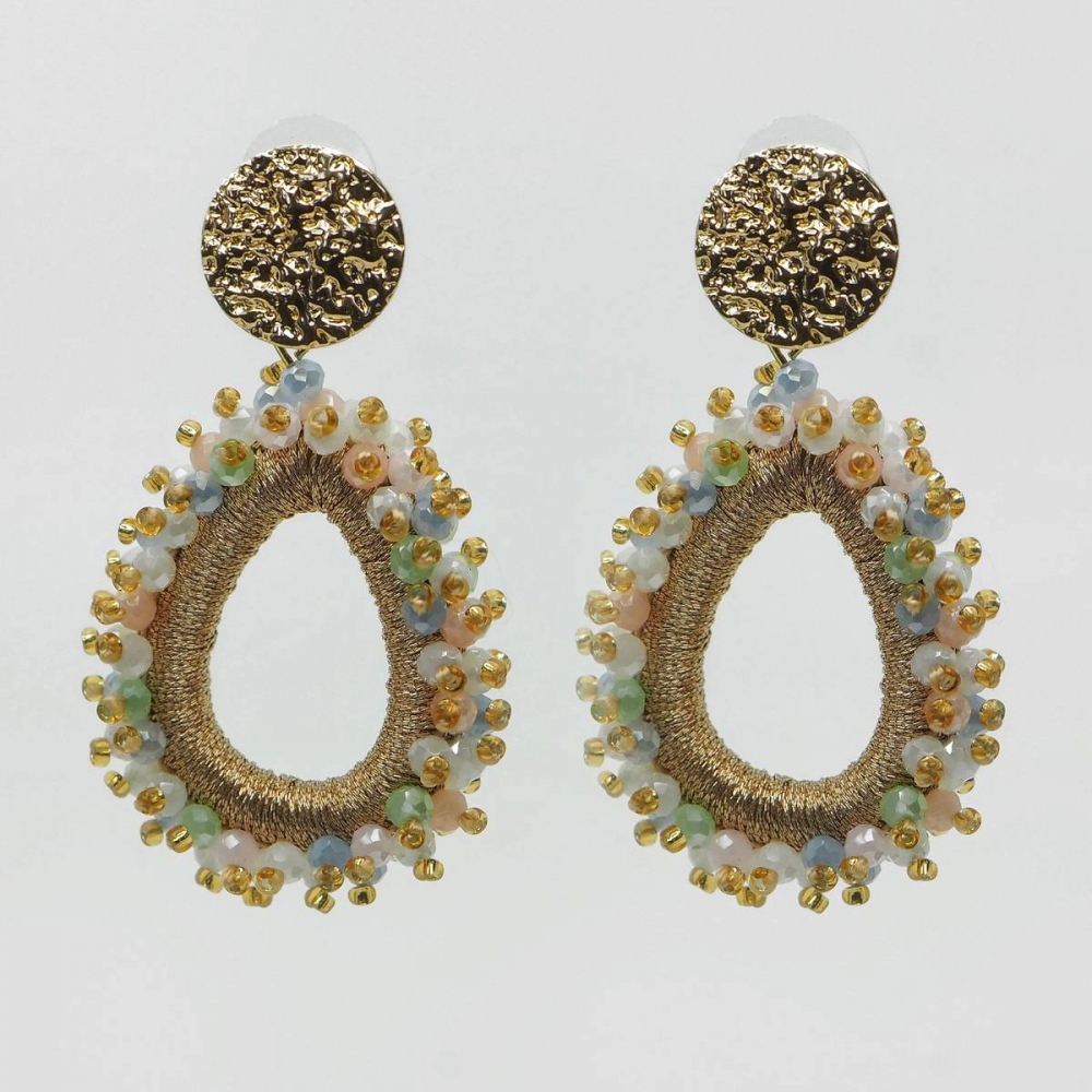 Nydelige øredobber med glassperler og gulldekor. Øredobbene er ikke tunge. Lengde: ca 5,5cm Nikkelfritt produkt.