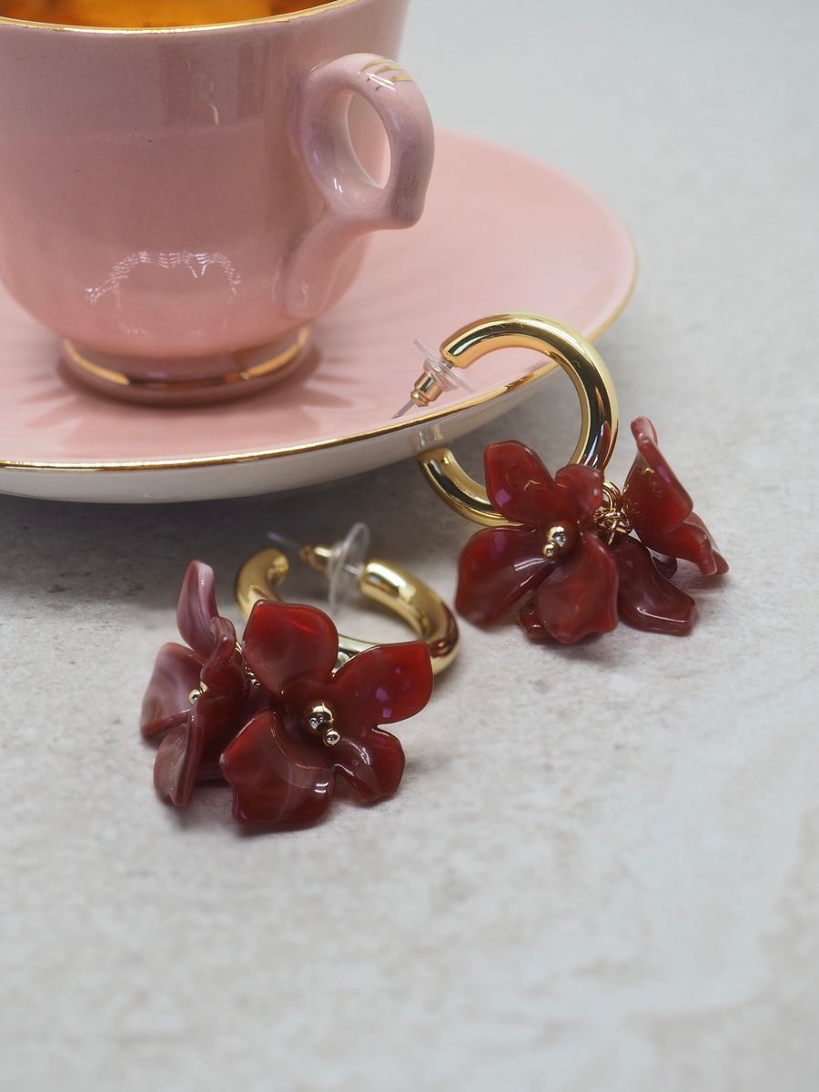 Øredobbene er i Stainless steel og belagt med 18k gull. Størrelse: 6cm lengde og 4,2cm bredde. Nikkelfritt produkt.
