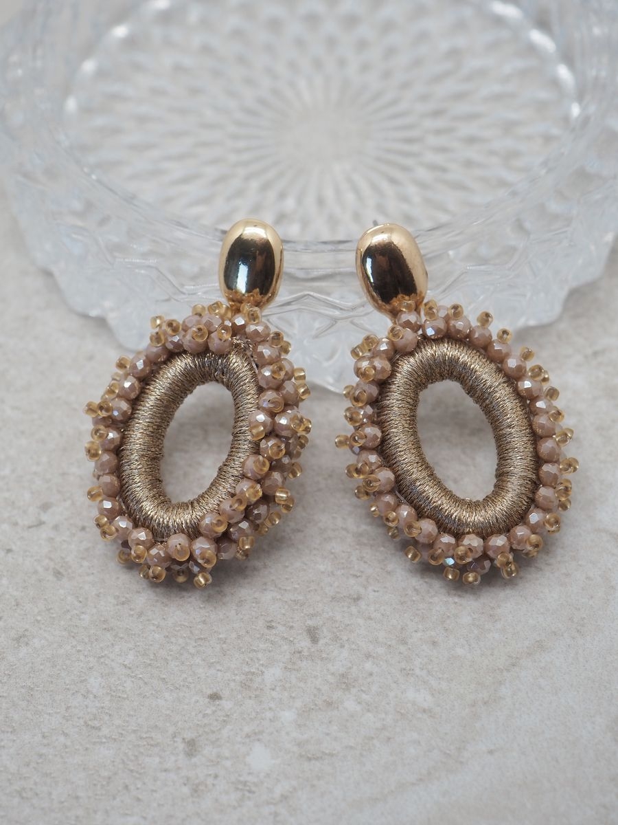 Nydelige øredobber med beige og grå/brune glassperler. Øredobbene er ikke tunge. Lengde: ca 5,5cm Nikkelfritt produkt.