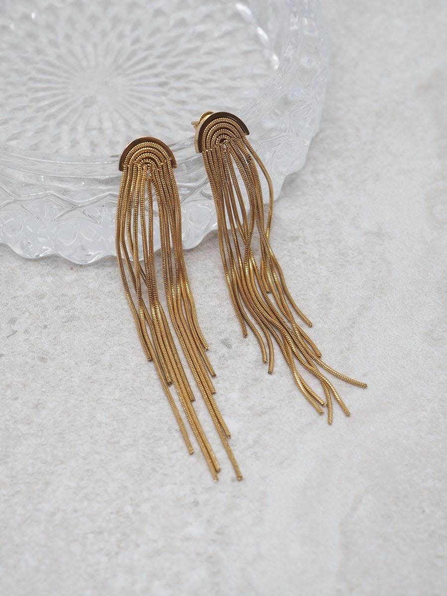 Disse øredobbene i stål kombinerer et klassisk design med en moderne vri. De fine frynsene i ulik lengde skaper bevegelse og liv, og gir et elegant, men samtidig trendy uttrykk.