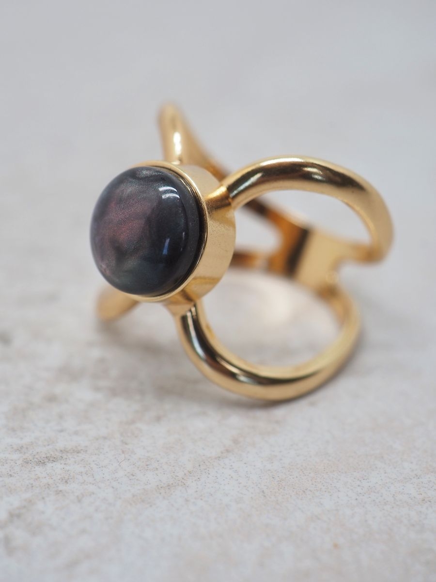 Denne skjerfringen i gullfarget metall har en moderne, åpen design som gir antrekket et stilrent preg. Perfekt for å style skjerf eller samle stoff på en elegant måte. Str.: 2cm * 2cm
