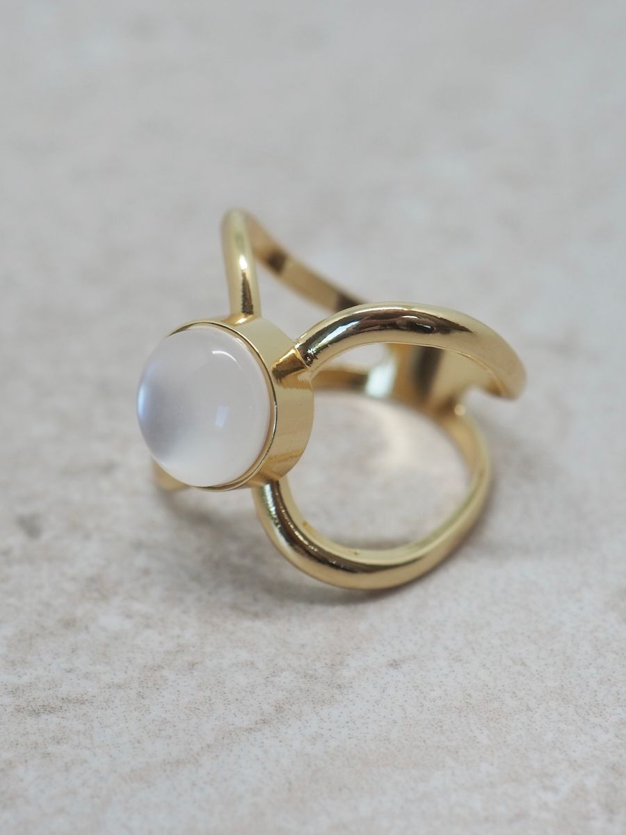 Bruk den til å samle et satengsjal. Skjerfnålen er både funksjonell og dekorativ, og passer like godt til hverdagsantrekk som til festlige anledninger. Skjerfnål med matt hvit glasstein og gullfarget finish.