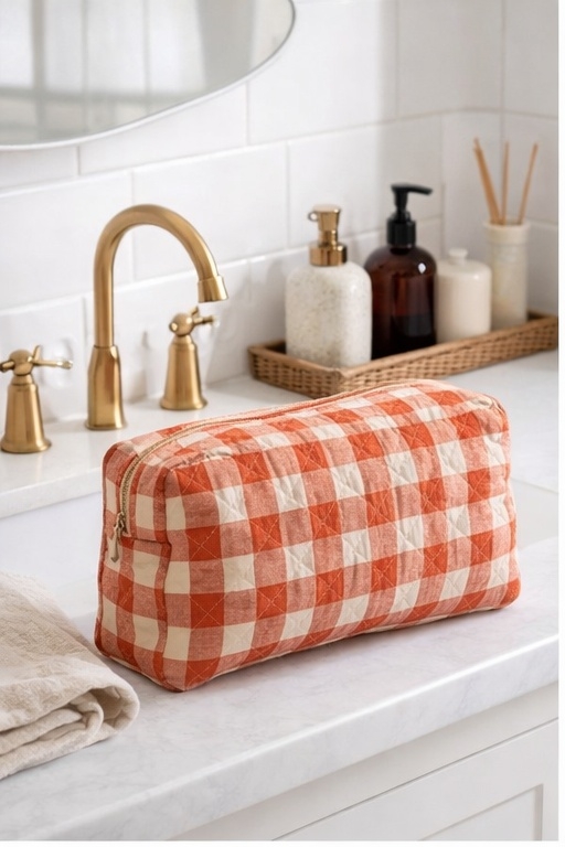 Herlig serie med stor og liten toalett veske samt veske i samme stoff! Denne store toalettvesken har plass til det meste, den er 34 cm lang, 23 cm høy og 12 cm bred.