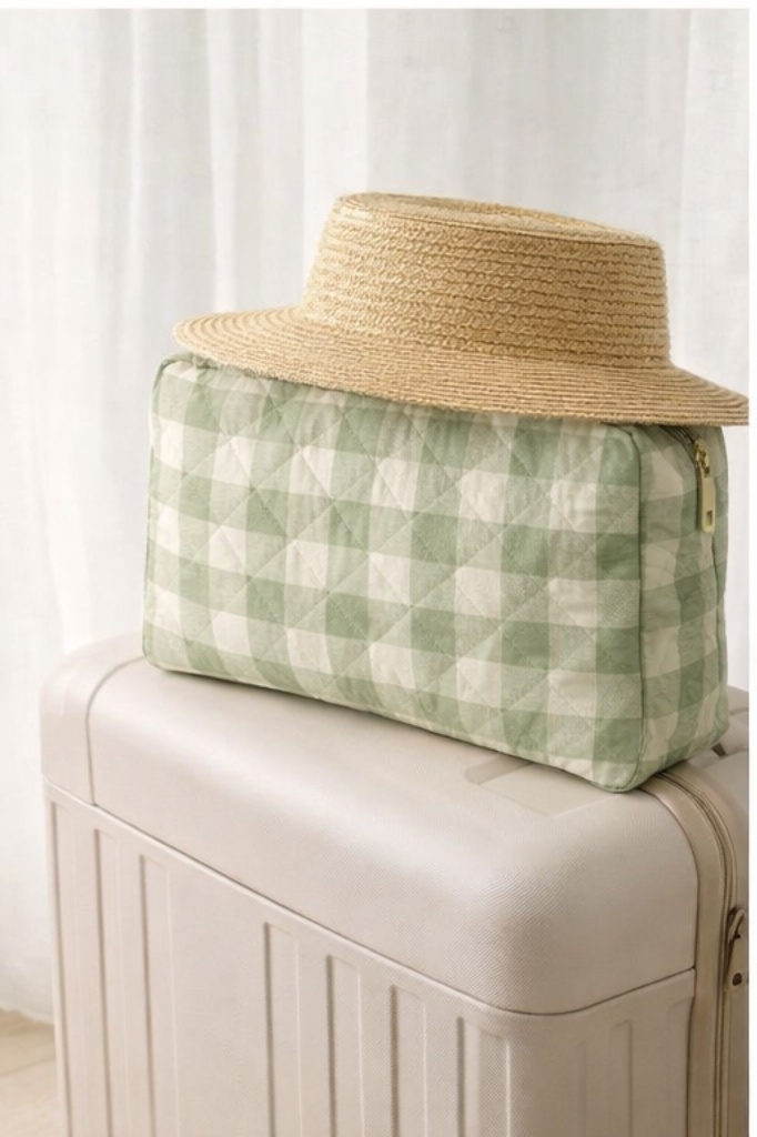 Toalettmappe grønn med oppheng og gulldetaljer