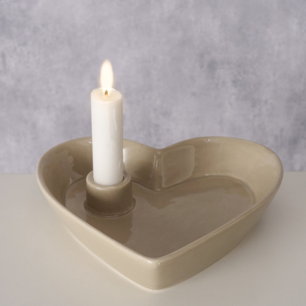 Keramikkfat med lysholder i fatet. 18,5 cm i diameter.