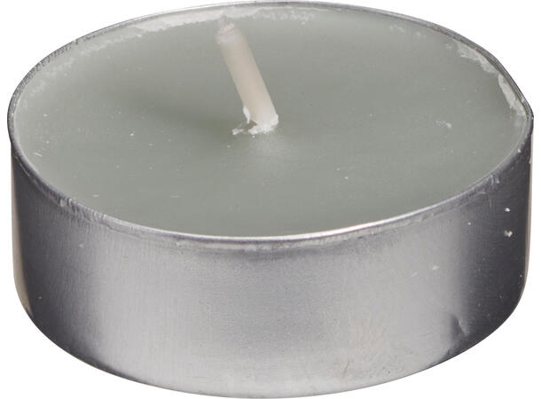Glassene er 5 x 4 cm. Lys grå, mørk grå, gul, blå og grønn. Vokslys.