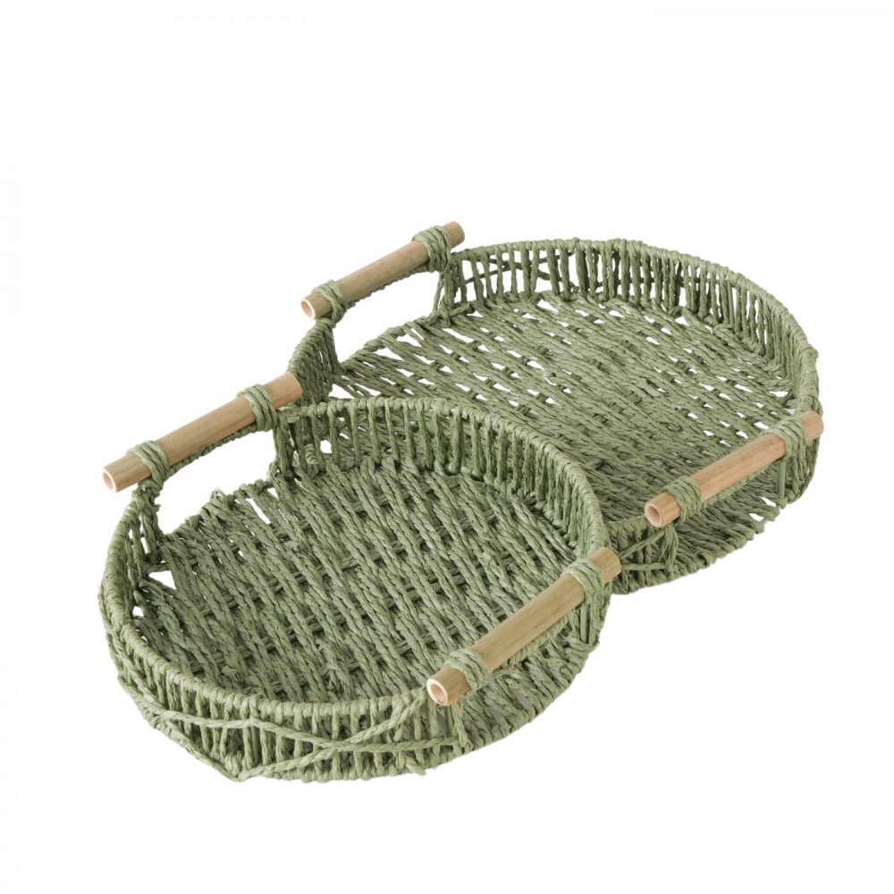 Disse bretten er håndlaget av resirkulert papir, bambus (Phyllostachys edulis) og jern. Den runde formen og den matte mørkegrønne finishen understreker et moderne design. 25 - 31 cm bredde, 7 cm høyde.